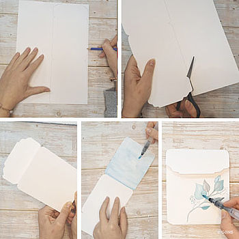 - Zeichne mit dem Bleistift Blumenmotive auf die Außen Verpackung und male sie mit dem Wassertankpinsel aus.