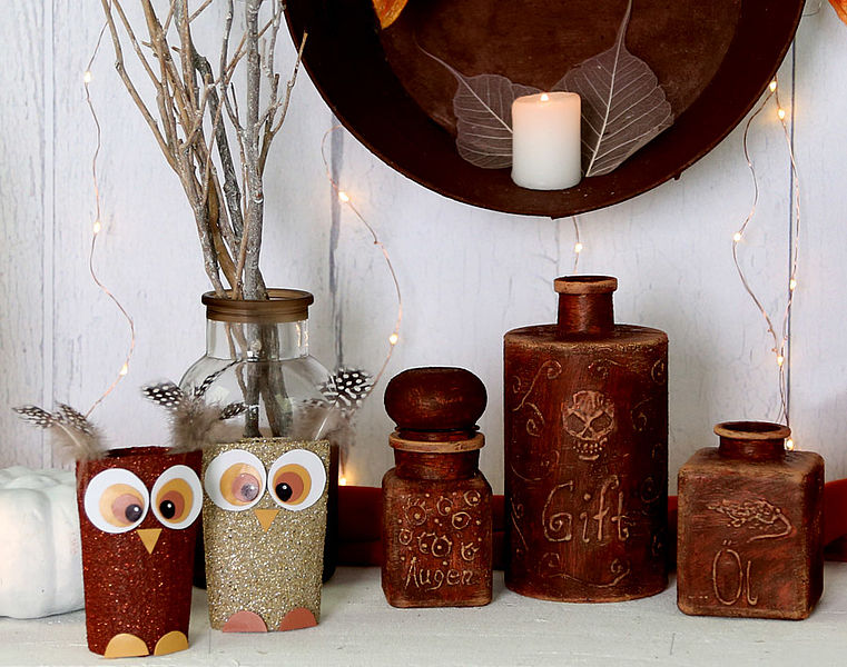 Notre RostCreme est disponible en Kit complet pour effets de rouille réalistes à l’intérieur comme à l’extérieur. Avec la crème à haut pouvoir couvrant et les deux couleurs PatinaEffekt orange et vert, on obtient des effets de rouille réalistes – ce qui est idéal pour une jolie décoration effrayante à l’occasion d’Halloween. Pour cela il vous faut, outre la Kit RostCreme et de vieux flacons, OutdoorDecor Mjaune maïs, len DecoPointer jaune, notre pinceau plat n°40 et une éponge à tamponner.